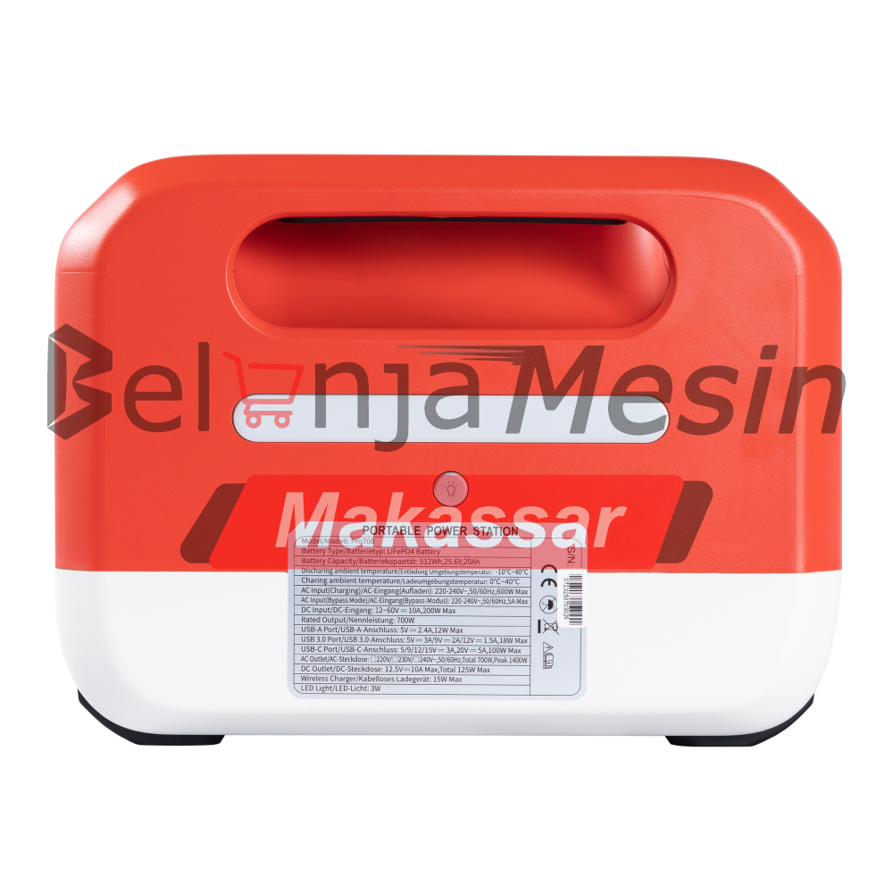 – Input AC (Pengisian ) : 220 – 240 V, 50 – 60 Hz , 600 W Maks