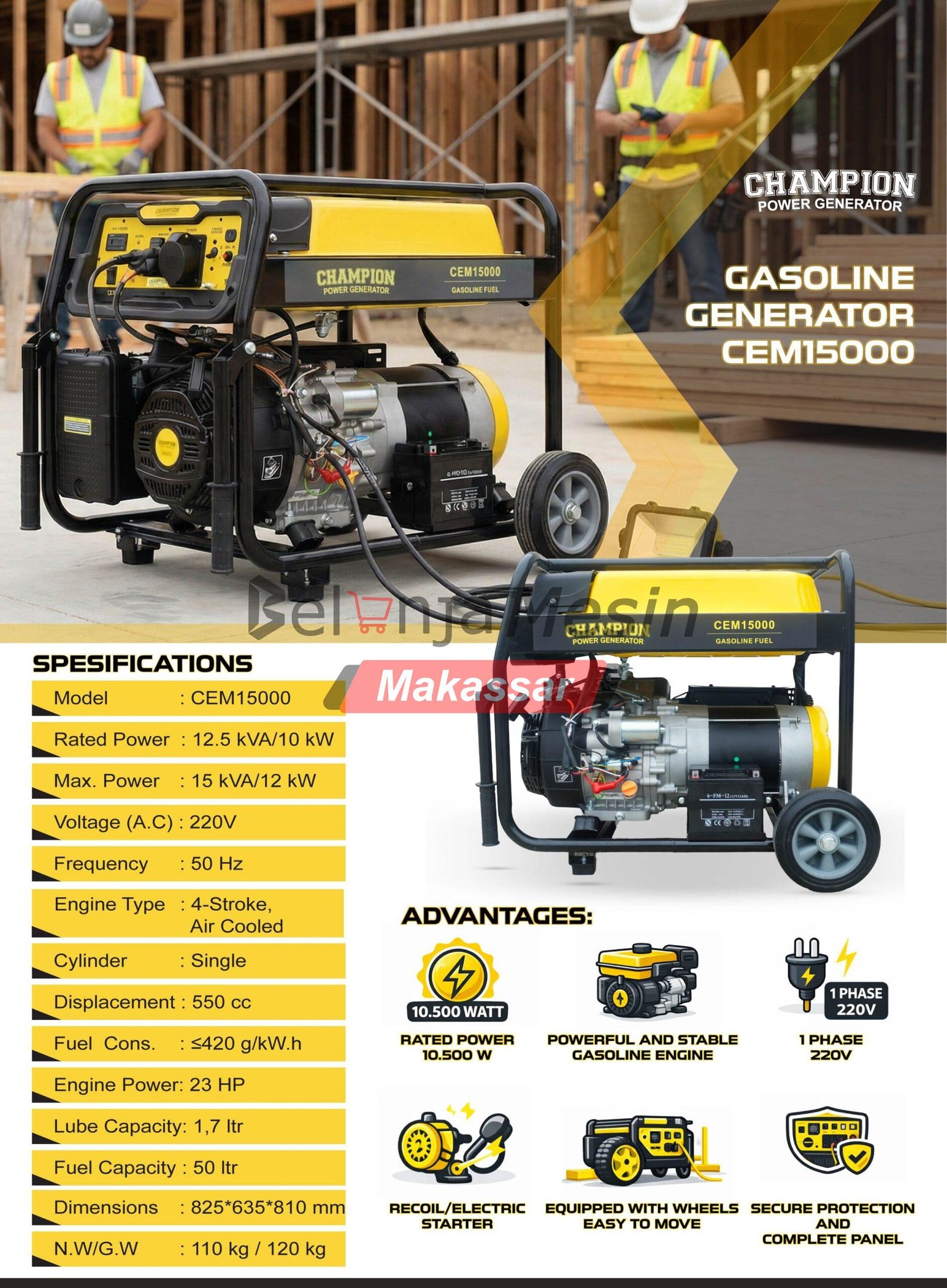 Genset Open Bensin 10000 Watt 1 Phase CEM15000 Champion