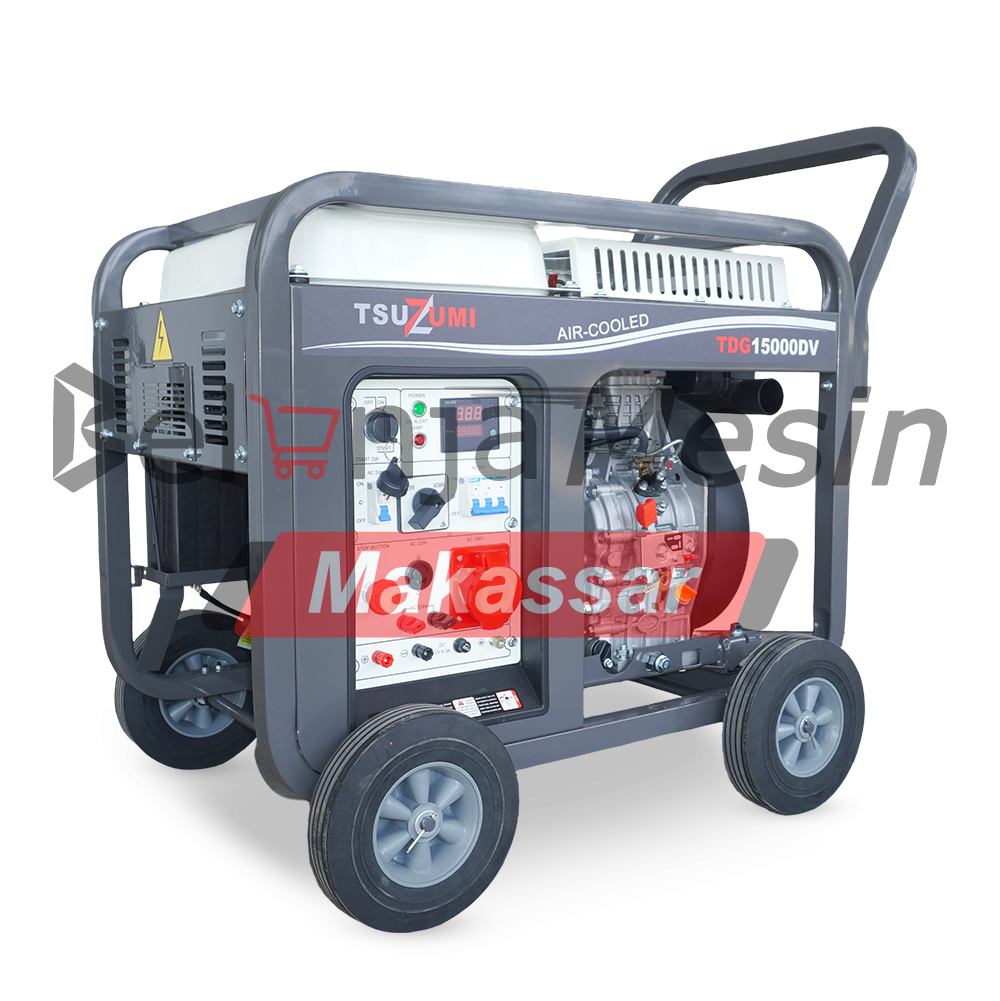 Genset Tsuzumi TDG15000DV merupakan generator listrik tipe silent diesel dengan kapasitas besar yang dirancang untuk kebutuhan daya tinggi dan penggunaan jangka panjang. Dengan output 15 KVA atau sekitar 12.000 watt, genset ini sangat ideal digunakan untuk berbagai kebutuhan seperti industri kecil, proyek konstruksi, gedung, workshop, hingga operasional usaha yang membutuhkan listrik 3 phase yang stabil.