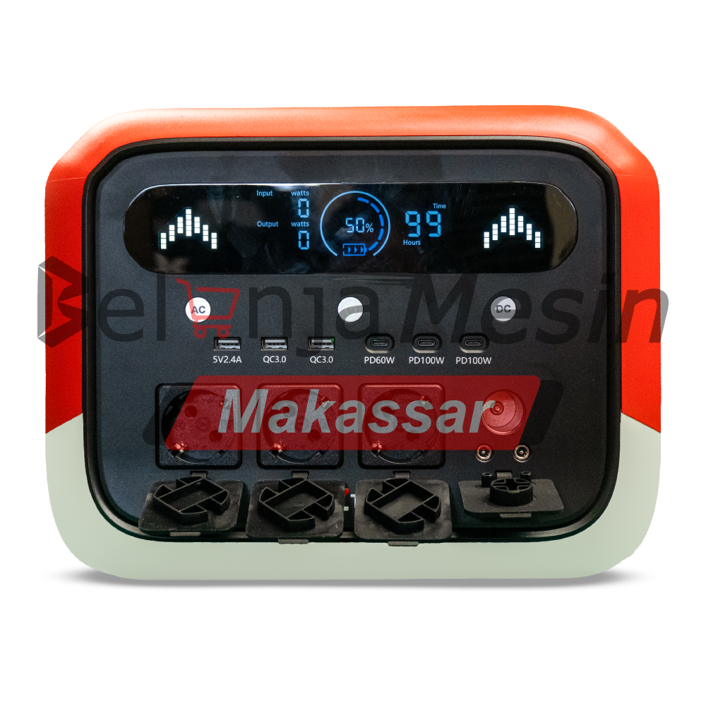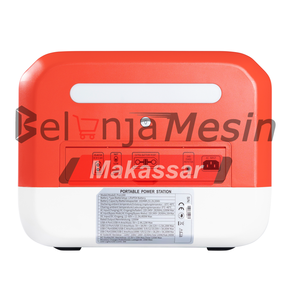 – Input AC (Pengisian ) : 220 – 240 V, 50 – 60 Hz , 1200 W Maks