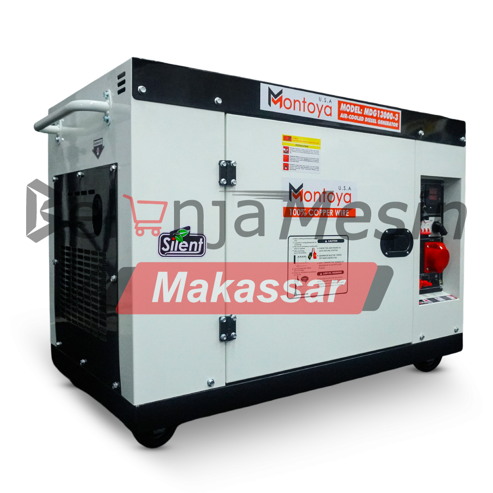Menggunakan dinamo 100% tembaga, Montoya MDG 13000-3 menghasilkan listrik lebih stabil, efisien, dan tahan lama. Tegangan 380/220V dengan frekuensi 50Hz sesuai standar listrik Indonesia. Dilengkapi casing silent untuk suara lebih senyap serta standar ISO 9001 & CE yang menjamin kualitas dan keamanan.