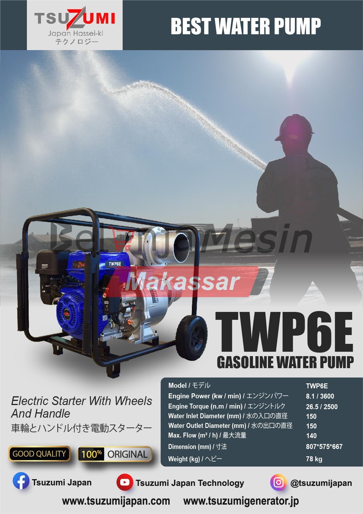 Pompa Alkon Gasolin 6 Inch 8.1KW 3600 RPM Tsuzumi TWP6E